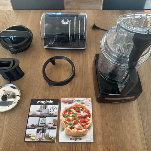 Magimix T190 skæremaskine, egnet til præcis skæring af forskellige fødevarer. Ideel til både husholdningsbrug og mindre professionelle opgaver. NB har engelsk stik, kan udskiftes. Omformer medfølger.
