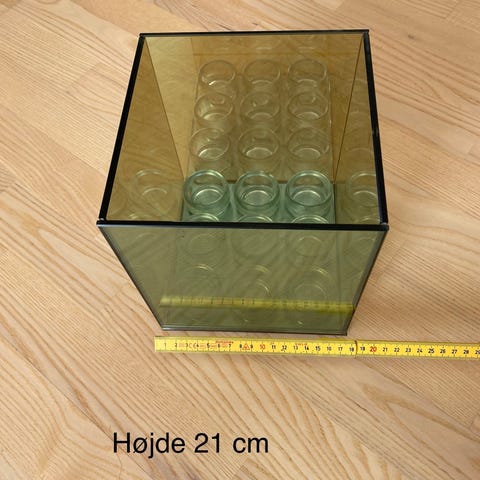 IKEA dekoration ornaments i farvet glas. Sættet indeholder flere glasbeholdere i forskellige farver, hængt sammen med metaltråd. Perfekt til at skabe en farverig og dekorativ effekt i hjemmet.