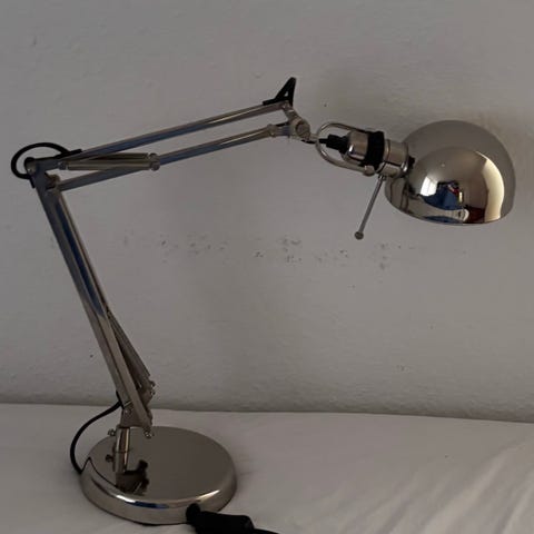 Fin og funktionel arkitektlampe med 150 cm ledning med hanstik og mellemafbryder. Bruger elpære stor sokkel/E27. Med spændstige fjedre der holder lampen i position. Ingen buler - kun lidt brugsspor på skærm. Med universal klemme til væg eller bord.