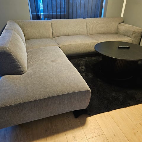 Stor hjørnesofa i super kvalitet fra VIPP. Model Loft, med tilhørende puf/otttoman, altsammen i lækker grøn velour. Brugt men velholdt og i god stand ca 5 år gammel. Måler 260x360 og er i 3 moduler - Pris fra ny dkk 70,000.