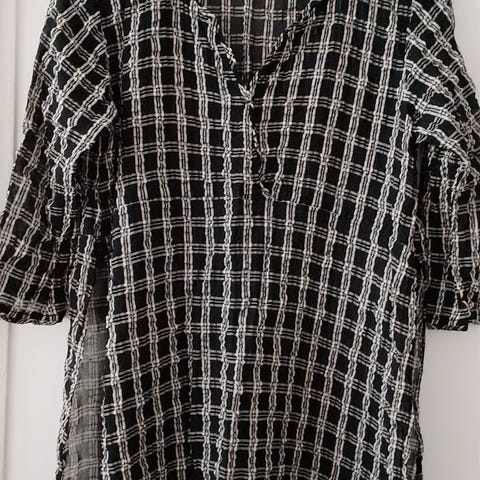 Mønstret tunika fra Massi. 3/4 lange ærmer. Lille kinakrave.100% Viscose.