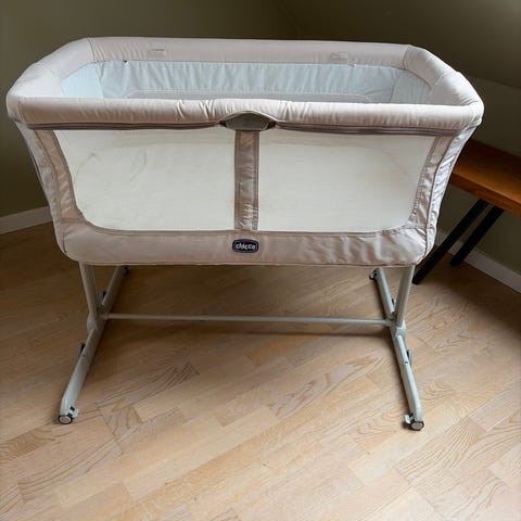 Chicco Next2Me bedside crib i grå farve. Designet til at stå ved siden af forældrenes seng for nem adgang til barnet. Justerbar højde og let at flytte takket være hjulene. Velegnet til nyfødte og spædbørn. Rigtigt god og næsten ikke brugt. Kan indstilles i højden til seng mv. man kan ikke se den er brugt, sælges billigt fordi vi rydder op i børnetingene. Krybbe til nyfødt samsovning.