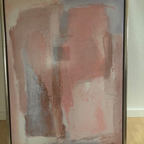 Kunstværk indrammet maleri med en farverig komposition. Rammen er detaljeret og tilføjer et klassisk touch til værket. Velegnet til ophængning i stue eller kontor for at tilføje et kunstnerisk element til rummet. H: 87x69 cm