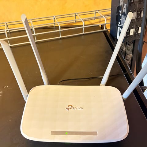 TP-Link Archer C7 Router AC1750 Dual i sort. Denne router understøtter både 2.4GHz og 5GHz frekvensbånd, hvilket giver mulighed for hurtige og stabile trådløse forbindelser. Den er udstyret med tre eksterne antenner for forbedret dækning og signalstyrke. Routeren har flere LAN-porte til kablede forbindelser samt USB-porte til deling af filer eller printere over netværket. Ideel til hjem eller små kontorer, der har brug for pålidelig internetforbindelse.