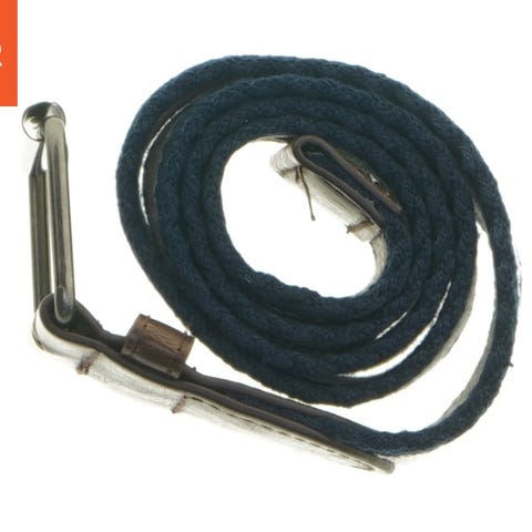 Brunt bælte i kunstlæder med prægning. Længde 79,5 cm og bredde 1,2 cm. Sælges for kr. 30,-.