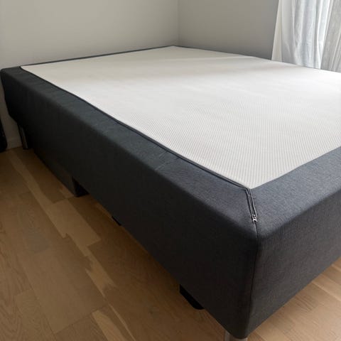 Boxmadrassen med lidt ekstra plads. Den er 100 * 180 cm. Man ligger super godt i den.