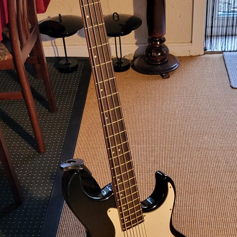 3/4 Stagg Bass Guitar i sort farve med træhals. Den har en klassisk form og er velegnet til både begyndere og erfarne musikere. Guitaren har fire strenge og er designet til at levere en dyb og fyldig lyd.