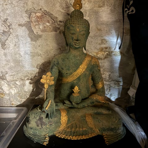 Vintage dekorative figurer i metal med en bronzefinish. ( det er Bronze ). Indeholder forskellige designs, herunder skildpadder, en gris, en Buddha-figur og en figur med et dyr. Velegnet til indretning og samling. Priser 5-600 kr stor Buddha 1200 krMateriale: Metal. Farve: Bronze.