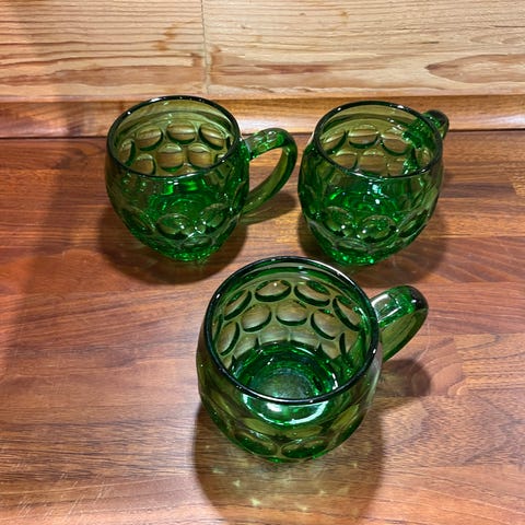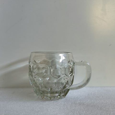 2 ravfarvede, børne glas krus, fra Fyns Glasværk.