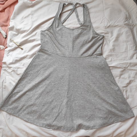 H&M hverdagskjole i grå farve, størrelse 38. Kjolen er designet til kvinder og er velegnet til daglig brug. Den har et enkelt og klassisk snit, der gør den alsidig til forskellige lejligheder. Materialet er behageligt og let, hvilket giver en god pasform. Perfekt til både arbejde og fritid.