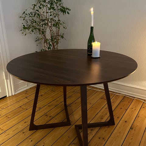Spisebord m enkelte brugsspor. L200, b80, h75.