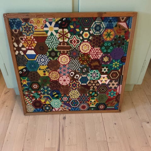 Indrammet værk fra den verdenskendte patchwork kunstner Bodil Gardner. De her er ikke nemme at få fingrene i da de normalvis udstilles på museer i hele verden. Send et bud. Skambud frabedes. #bodilgardner #bodilgardnerforsale.