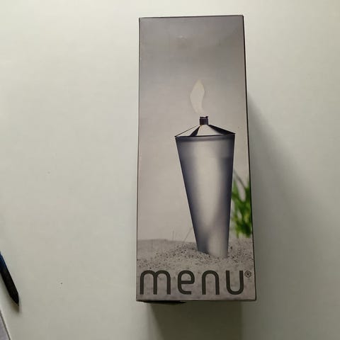 Menu udendørs fakkel. Designet til at give en behagelig atmosfære i haven eller på terrassen. Faklen er lavet af glas.Glasset er håndlavet med usædvanlig tyk væg. Dette giver den nødvendige styrke til udendørs brug. Den har en elegant kegleform og kan bruges til at skabe stemningsfuld belysning.