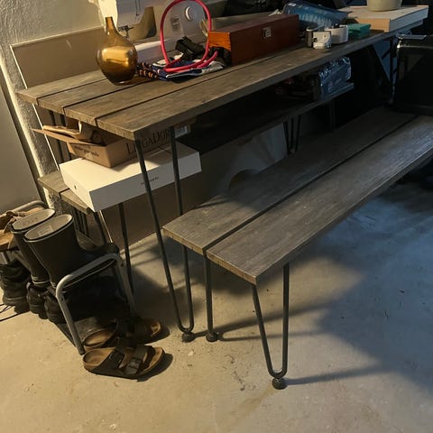 Terrasse Bord i træ og metal inkl 3 stole fin pris