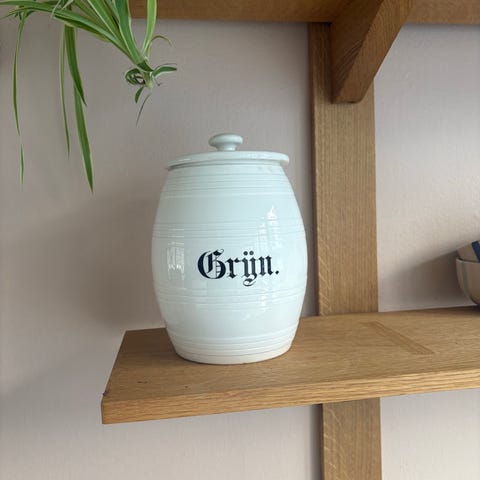 Retro opbevaringskrukke, Mål : h 18 cm Ø 11;5 cm. Uden skår og revner.