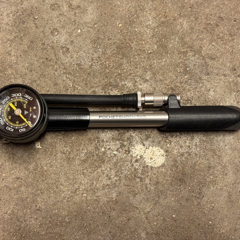 Pumpe til forgaffel på MTB. Kan pumpe op til 300 psi/20,7 bar. Med kulstoffaset skivemåler, for at opnå en meget præcis inflation. Med udluftningsventil og Pressure-Rite, der gør det let at indstille det korrekte tryk, samtidig med at du minimerer lufttab ved afbrydelse.