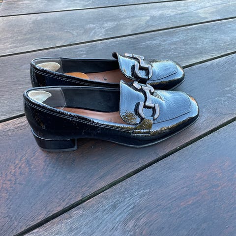 Tamaris Loafers med snørebånd i sort blank farve størrelse 38.