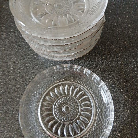 7 isassietter, ravfarvet, Dia. Ca. 17,3 cm.