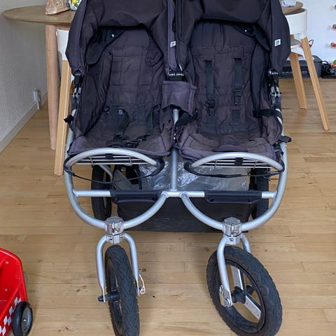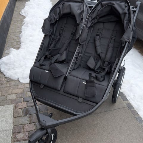 Dobbelt klapvogn “Thule glide 2 double”, som har den beste komfort for børnene og virkelig god at køre med.