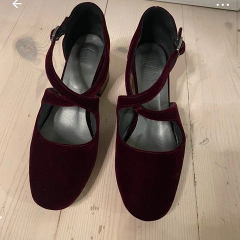 Pumps, str. 41, Grå silkestof, Ubrugt, Elegant damesko i gråt silke stof med pyntesyninger, spids tå og lille stilet hæl.
