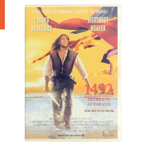 1492 Erobring Af Paradis DVD Film med Gérard Depardieu og Sigourney Weaver. Historisk drama om opdagelsen af den nye verden. Filmen er på dansk og indeholder episke scener fra Columbus' rejse.