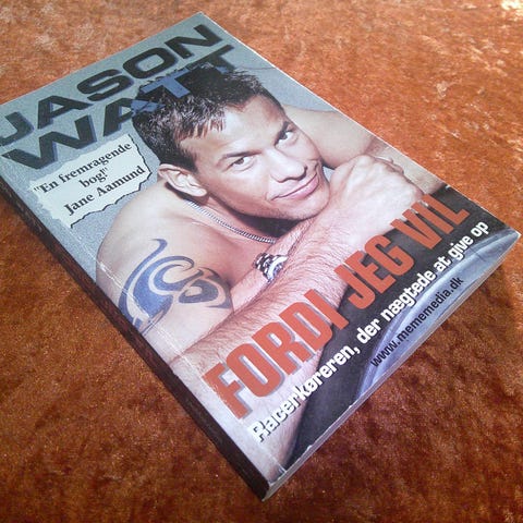 Fordi jeg vil , Jason Watt, genre: biografi, Racerkøreren Jason Watt (f. 1970) fortæller om sit liv hvor han midt i sin karriere blev lammet ved en motorcykelulykke. På trods af lægernes dom om en tilværelse i kørestol har han ikke givet op og har nu, i en specialbygget bil, fået et comeback inden for motorsport.