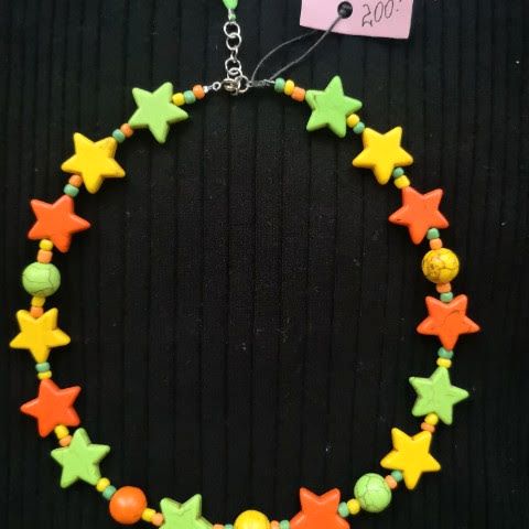 stjerne halskæde i et farverigt design. Halskæden er lavet af forskellige materialer og har stjerneformede perler i flere farver. Velegnet til både mænd og kvinder.