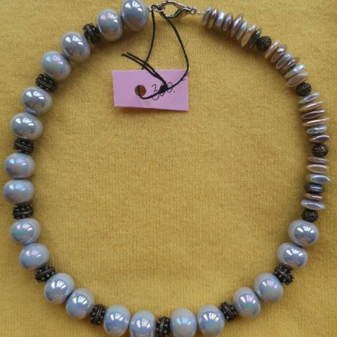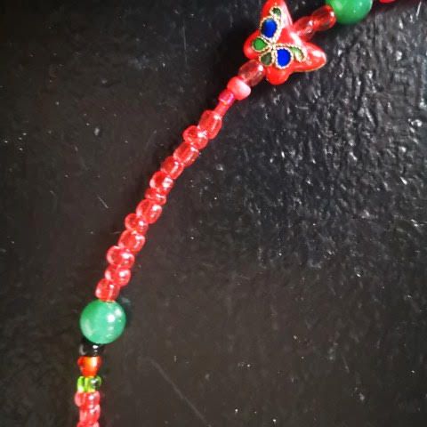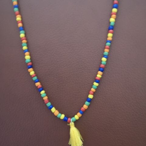 halskæde med fantastisk kombination af smukke små glas perler med små kvaster.