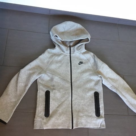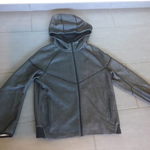 Trøjen har hætte, 2 sidelommer med lynlås og en lomme på ærmet med lynlås.
