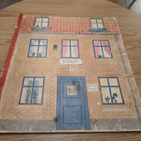 “Det gule hus” fortalt af Grete Janus Hertz og fint illustreret af Iben Clante. Meget speciel børnebog med seks historier gemt bag de seks døre i opgangen. Valgt som årets børnebog og tildelt guldmedaljen “Critici in Erba”, Bologna 1976. 10. oplag udgivet af Carlsen i 1998. Navn på cover, men derudover fin stand!