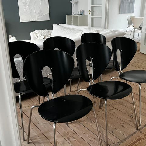 Spisebordsstol, Globus Stua, Stol designet af Jesus Gasca. Model: 'Globus Stua', stabelbare stole med stel af forkromet stål, sæde og ryg af fineret birk. Fremstillet af STUA, Spanien. Fremstår med brugsspor. Har 1 stk tilbage. Afhentes i Risskov ved Århus.