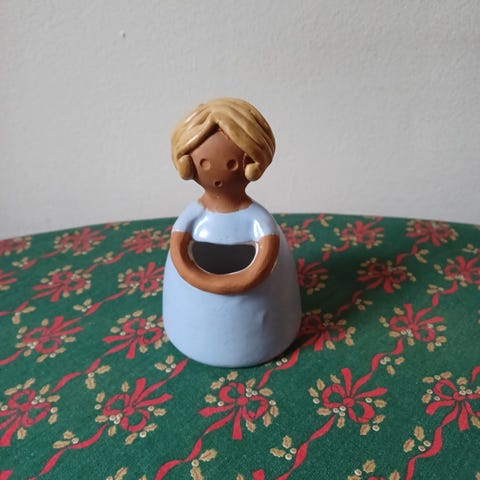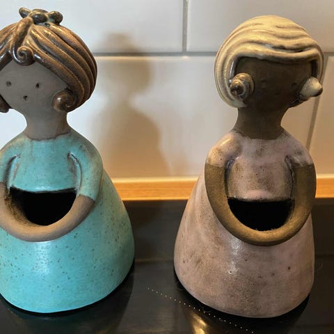 ELBOGEN-piger, Elbogen, Sverige, Søde buttede piger i de smukkeste kjolder og med hul til tørrede blomster sælges fra min samling. Ca. 13 cm høje, fejlfrie og dekorative. Pris pr. stk. 125kr plus evt. fragt.