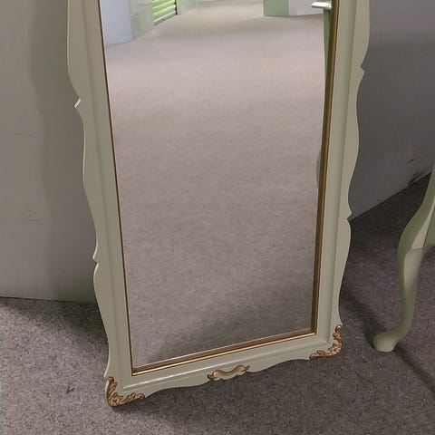 Rigtigt flot creme hvidt / råhvidt vægspejl - entrespejl - figurspejl med flotte guld detaljer