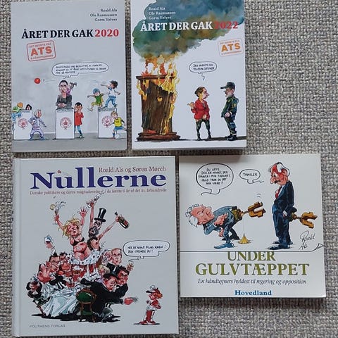 Nullerne - danske politikere og deres magtudøvelse, Roald Als & Søren Mørch, genre: humor, Humor i tekst og tegninger, Stort format, Hardback-indbundet , Politikens Forlag, , 1.udgave, 2012 , 299 sider.