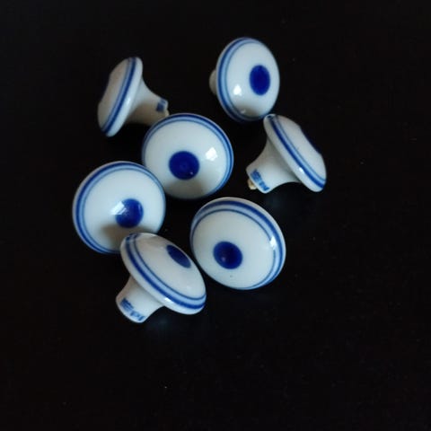 Smukke Musselmalet møbelknopper i porcelæn fra Royal Copenhagen.