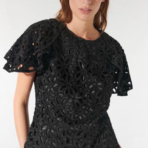 Flot og helt speciel festbluse. Den er helt dyb sort, men det er lidt svært at fange på billeder.