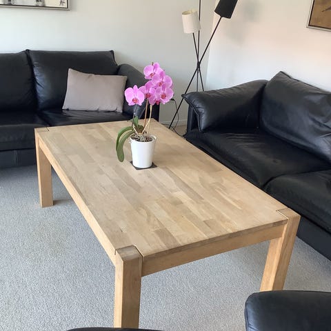 Flot sofabord i ask træ 140x80 cm 3 cm tyk