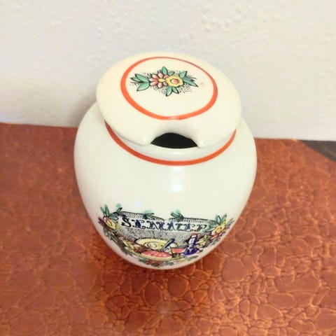Aksini stentøjs krukke til sennep eller lignende. 8 cm ø 4,5 cm høj