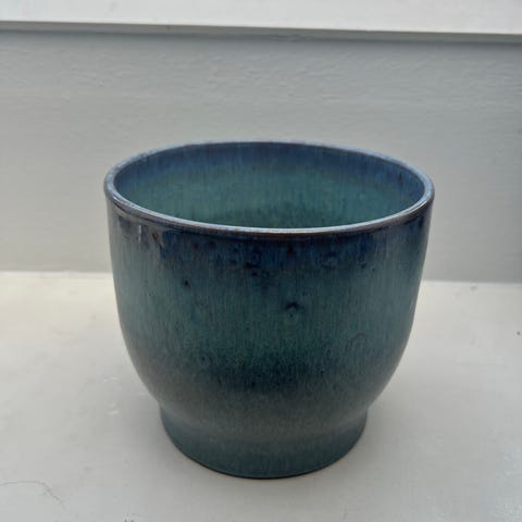 Keramisk urtepotte i beige og grå nuancer med en H på 13,5 cm og diameter på 12 cm. indvendigt og 13,5 cm udvendigt. Potten har en glaseret overflade udvendigt og inden i Den er velegnet til indendørs brug til små planter eller urter. Potten er uden skår.