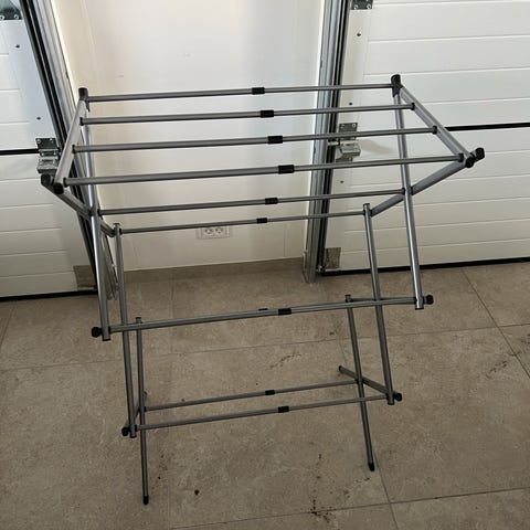 Robust rejse tøjstativ fra Soopl. Fungerer som det skal, men med lidt rust på bøjlestangen og mindre hul i stof (ses på billede)