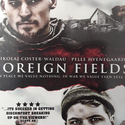 Foreign Fields DVD featuring Nikolaj Coster-Waldau and Fille Hvenegaard. The film explores themes of war and personal values in a conflict zone. Suitable for viewers aged 15 and above. Region 2 format.