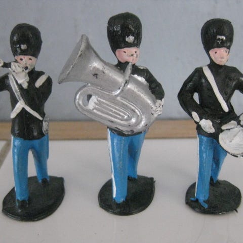 garder produceret i Danmark af Reisler. 6,5 cm høj. Det yderste af trommestik mangler.
