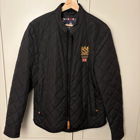 Morris Stockholm Quilted Jakke i navy farve. Super stilfuld jakke. Str L. Brugt to gange og fremstår som nyt. Købt fra Magasin.dk