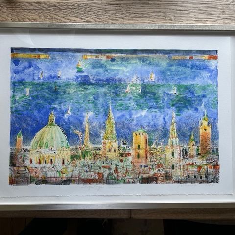 Proff. Indrammet. Sign. Og numm. I blyant. Rammemål 45x57 cm