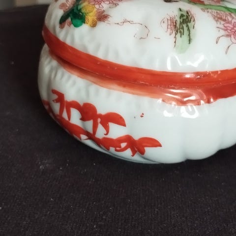 Måler 8 cm i diameter og 6 cm høj uden låg.