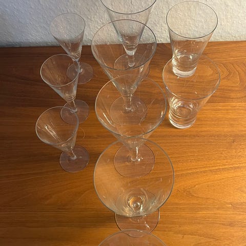 47 stk forskellige glas fra Holmegaard glasværk - af serien Clauholm.