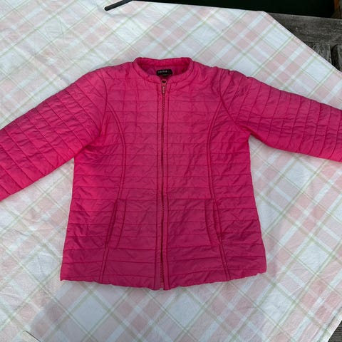 Sort, blød fleecejakke med windbreaker i. Kan bruges som almindelig jakke. Fine detaljer som sølvsnore langs lynlåsen, lynlåslommer, lomme på armen og lidt pink her og der.