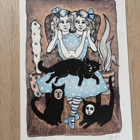 Julie Nord Litografi ‘The Cave’ nummereret i professionel kunstindramning fra Edition Copenhagen. Mål på litografi: 52 x 34 cm.
