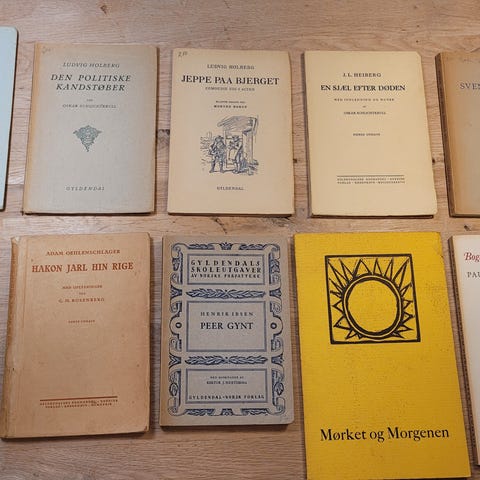 Et par hyldemeter bogudgivne danske skuespil fra 1990 og frem (og enkelte ældre). Både voksen- og børne/ungdomsdramatik. Alle er i bogudgaver og fremstår som nye. Sælges for kun 25 pr. stk. - og 5 stk. for kr. 100.