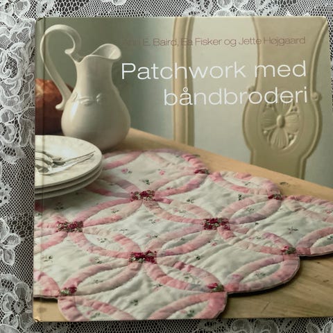 Patchwork med båndbroderi. Af Ann E. Baird, Ea Fisker og Jette Højgaard. Hardback. Stort format. Aschehoug, 2003. Flot eksemplar